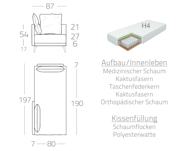 In die Sitz- und Liegefläche ist eine hochwertige Boxspringmatratze integriert. Dadurch bietet ONO nicht nur eine ästhetische Erscheinung, sondern auch erstklassigen Komfort zum Entspannen, Lesen, Ruhen oder Übernachten.